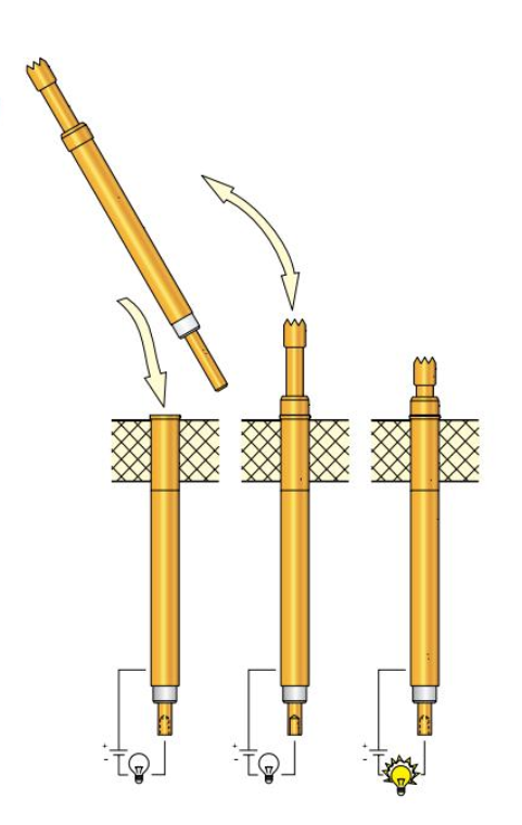 這是開關(guān)探針的基礎(chǔ)功能。通過探針的針尖(或接觸端)與被測對象(如PCB焊盤、芯片引腳、端子)的物理接觸,實現(xiàn)低阻抗導電通路,確保電流、電壓、高頻信號等參數(shù)在測試系統(tǒng)與被測器件(DUT)之間無失真?zhèn)鬏敗?/p>