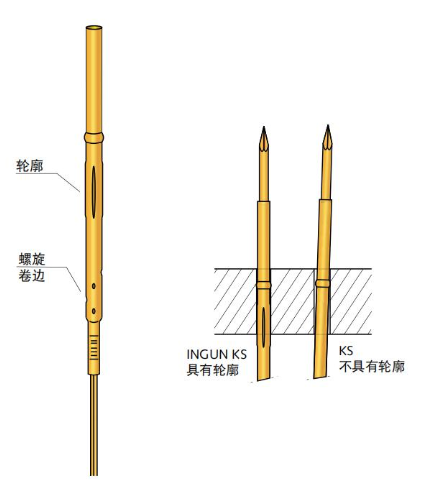 針對不同的測試治具工作行程和測試點,探針套應有相應的卡環(huán)和壓環(huán)系列,以適應不同的安裝高度。