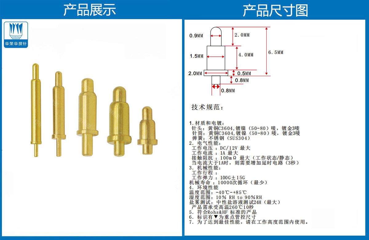 2.0-6.5-2.0電流針 當(dāng)前位置:首頁 » POGO PIN充電彈簧頂針 » 電流針2.0