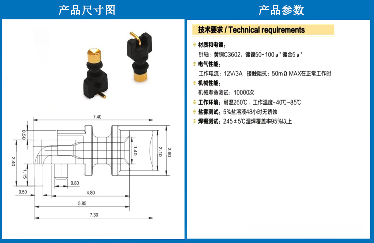 產(chǎn)品介紹:這個針通常用于智能手表,藍牙耳機上的有充電的功能,但是探針總體來說還是測試的