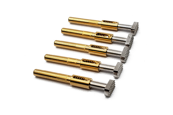 提高導電性能:金是一種具有高導電性的金屬材料,因此彈簧針?鍍金可以顯著提高其導電性能。這對于需要高導電性能的應用場景來說非常重要,例如在高速、高頻率的信號傳輸中,可以提高信號傳輸?shù)姆€(wěn)定性和可靠性。