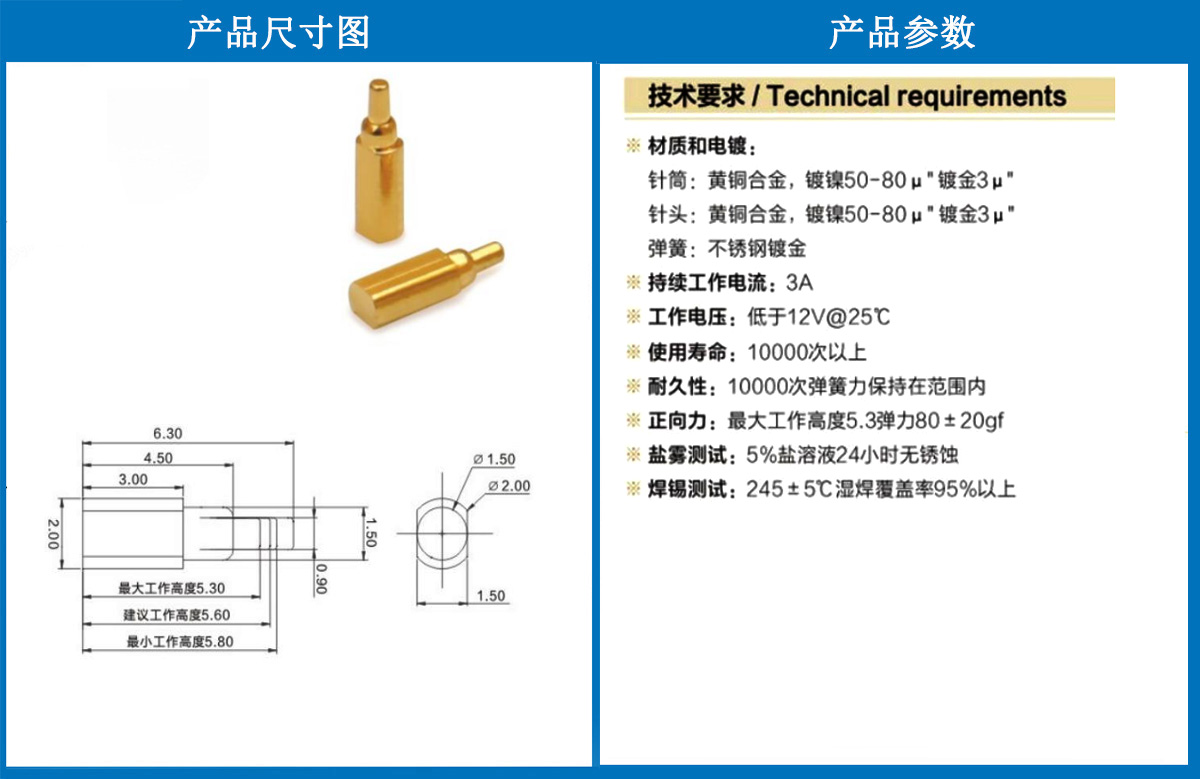 產(chǎn)品介紹:這個針通常用于智能手表,藍(lán)牙耳機(jī)上的有充電的功能,但是探針總體來說還是測試的